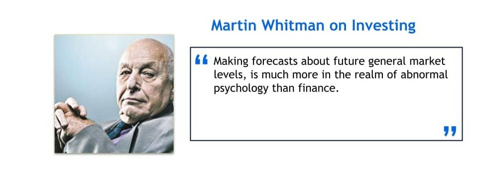 Martin Whitman's quote suggesting that making forecasts about future general market levels falls more into the realm of abnormal psychology than finance reflects his critical stance on market predictions. Whitman emphasizes the unpredictability and often irrational behavior of markets, which makes forecasting a speculative and psychologically driven exercise rather than a scientifically sound financial practice. He implies that focusing on market predictions is fraught with uncertainty and is not a reliable basis for investment strategies, thereby underscoring the irrational nature of trying to predict market movements.